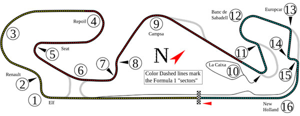 Os 4.655 metros são compostos por algumas retas e 16 curvas. Em situações normais, os pilotos deverão fazer este traçado por 66 vezes, para que se conheça o vencedor da etapa espanhola da Fórmula 1.