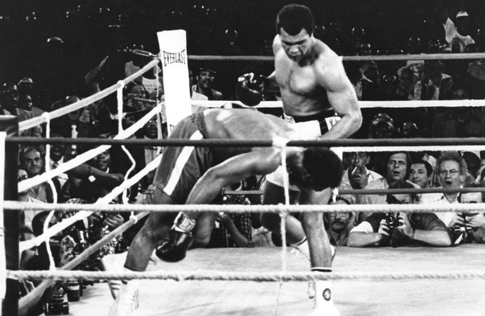 Em janeiro de 1974, Ali teve sua revanche contra Frazier no Madison Square Garden, vencendo por decisão dos árbitros após 12 rounds. No mesmo ano, aconteceu a famosa luta contra George Foreman, no então Zaire, hoje República Democrática do Congo, quando Ali recuperou o cinturão dos pesos pesados nocauteando o adversário no oitavo round. Ali fez da luta um acontecimento épico, encorporando o papel herói africano, pelo seu ativismo em prol do pan-africanismo.
