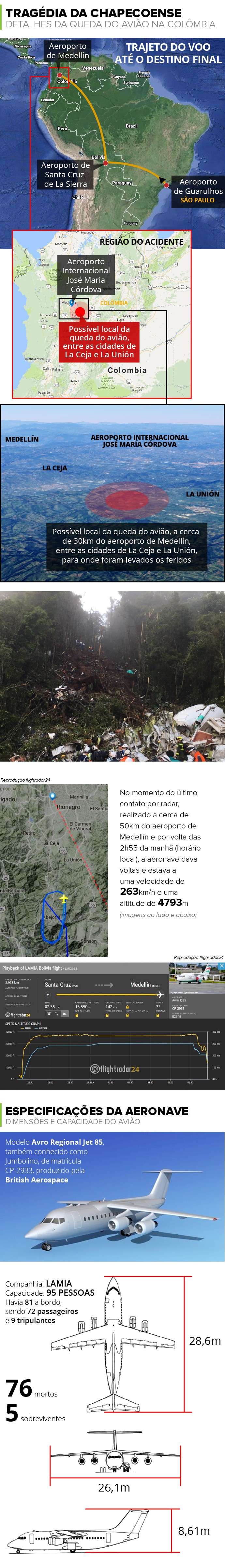 O avião que levava a equipe da Chapecoense até Medellín, para a final da Copa Sul-Americana contra o Atlético Nacional, caiu a 50 quilômetros da cidade colombiana por causa de uma falha elétrica. 81 pessoas estavam a bordo entre 72 passageiros e nove tripulantes: 76 pessoas morreram. Os únicos sobreviventes do voo foram os jogadores Alan Ruschel, Neto e Jakson Follmann; a aeromoça Ximena Suárez; o técnico da aeronave Erwin Tumiti e o jornalista Rafael Henzel. O goleiro Danilo foi retirado vivo do local, mas veio a falecer horas depois. Follmann teve que ter a perna amputada.