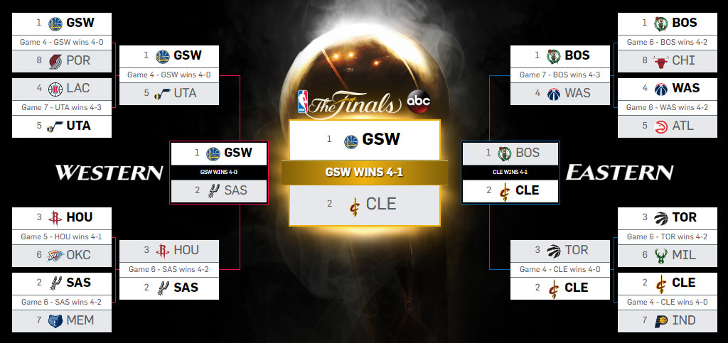 A série voltou para Oakland e depois de muita festa, os Warriors atropelaram os rivais no jogo do título. Não houve fim de jogo emocionante. Foram vitórias imponentes e seguidos shows de Durant.
