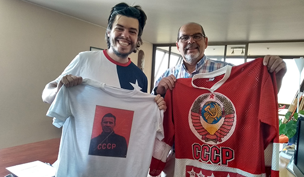 Ele disse que era um inventor e, quando entramos, tivemos certeza. Nos mostrou brevemente as criações que desenvolvia, principalmente para a diversão dos netos. Aí entendemos a razão dos macarrões de piscina. Eram para um brinquedo que faria para eles. Aliás, mais um, pois o apartamento era repleto deles. Guillermo não parava de mostrar coisas e, com muito orgulho, foi a vez de apresentar as camisas que colecionava. Eram muitas, mas dentre elas, camisas de hockey da equipe da União Soviética. Uma delas de outro Yashin, o Alexey.