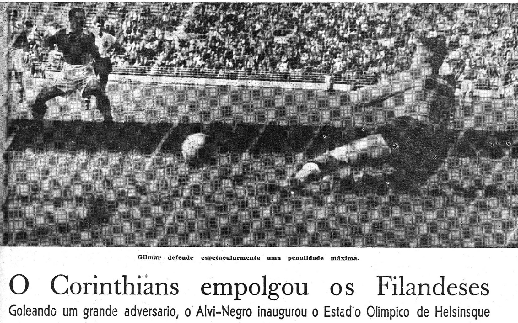 Em 1952, o Corinthians excursionou pela Turquia, Suécia, Finlândia e Dinamarca. Foram 15 jogos sem perder, com 13 vitórias conquistadas, mas, assim como a Portuguesa faria em 54, o time não voltou invicto. Logo na primeira partida em solo europeu, o time do Parque São Jorge foi derrotado pelo Besiktas, mas ainda assim recebeu a fita azul pela longa série invicta, graças a uma exceção aberta, que dois anos depois valeria também à Lusa. Cabe ressaltar que o jogo contra a seleção olímpica da Finlândia, realizado em 1º de junho, marcou a inauguração do Estádio Olímpico de Helsinque, que sediaria os Jogos Olímpicos daquele ano.
