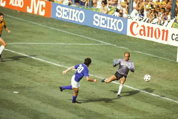 Aos 24, numa saída de bola, Cerezo erra um passe para Júnior, que chega atrasado no bote e Rossi chega na cara do gol pra colocar a Itália na frente novamente. Segundo dele no jogo com uma ajudinha do Waldir Peres (outro que destoava um pouco, bola defensável).