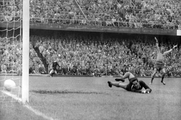 Liedholm acerta o canto de Gilmar e abre o placar para a Suécia. FOTO: Getty Images
