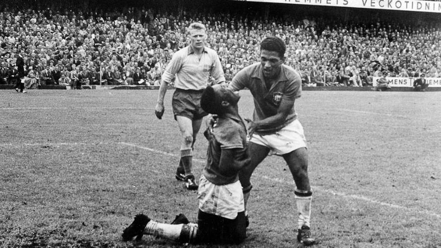 Pelé e Garrincha na final da Copa de 1958. FOTO: Luiz Carlos Barreto