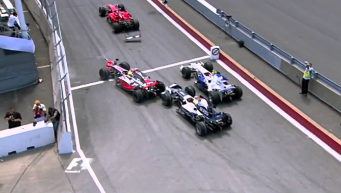 Naquele dia… “Em uma largada tranqüila, Lewis Hamilton manteve a ponta, à frente de Kubica e Raikkonen. Ele liderava a prova com sete segundos de vantagem quando o safety car entrou na pista por causa da Force India de Adrian Sutil, que parou em posição perigosa perto da curva 3.