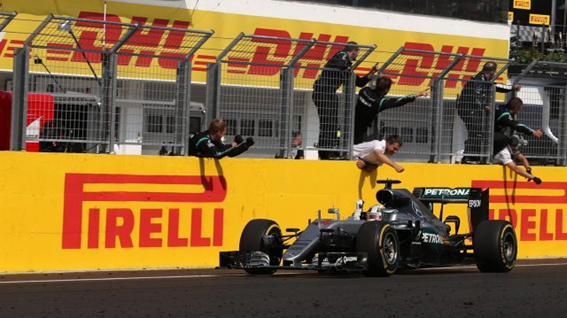 34/70 – Hamilton se livrou mais rapidamente dos retardatários que Rosberg e aumentou sua vantagem para 2s5. Pelo rádio, porém, o britânico foi informado pela equipe que Ricciardo vinha se aproximando de seu companheiro e que, caso isso continuasse, eles chamariam primeiro o alemão para o segundo pit stop, para não correr risco dele perder a posição para o australiano. O inglês questionou a ordem.