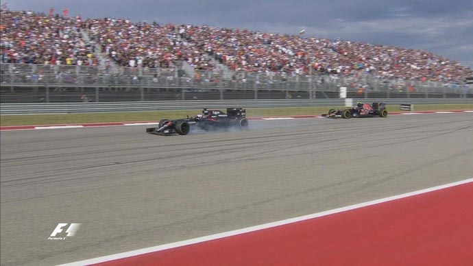 52/56 – À caça de Sainz, Massa foi atrapalhado por um erro do jovem espanhol e acabou sendo surpreendido por outro espanhol, Alonso. O veterano jogou por dentro, tocou roda com roda com o brasileiro e tomou o sexto lugar. Por causa do choque, Massa teve um pneu furado e precisou fazer um pit stop extra.