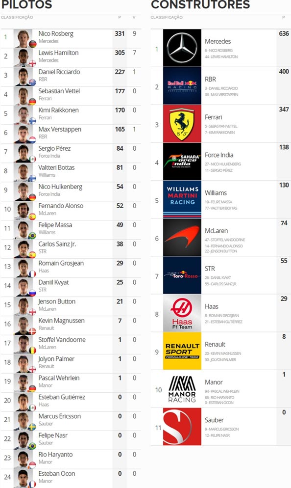 Mesmo assim, Nico Rosberg ainda pode ser campeão no México. Se vencer a corrida e Hamilton for, no máximo 10º lugar, Rosberg fatura o título com 3 corridas de antecipação.