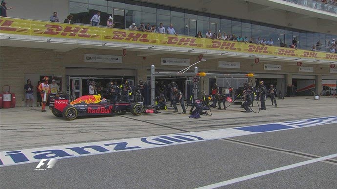 9/56 – Ricciardo e Raikkonen abriram os trabalhos nos boxes entre os ponteiros. Ambos trocaram os pneus supermacios por macios e retornaram, respectivamente, em oitavo e nono.