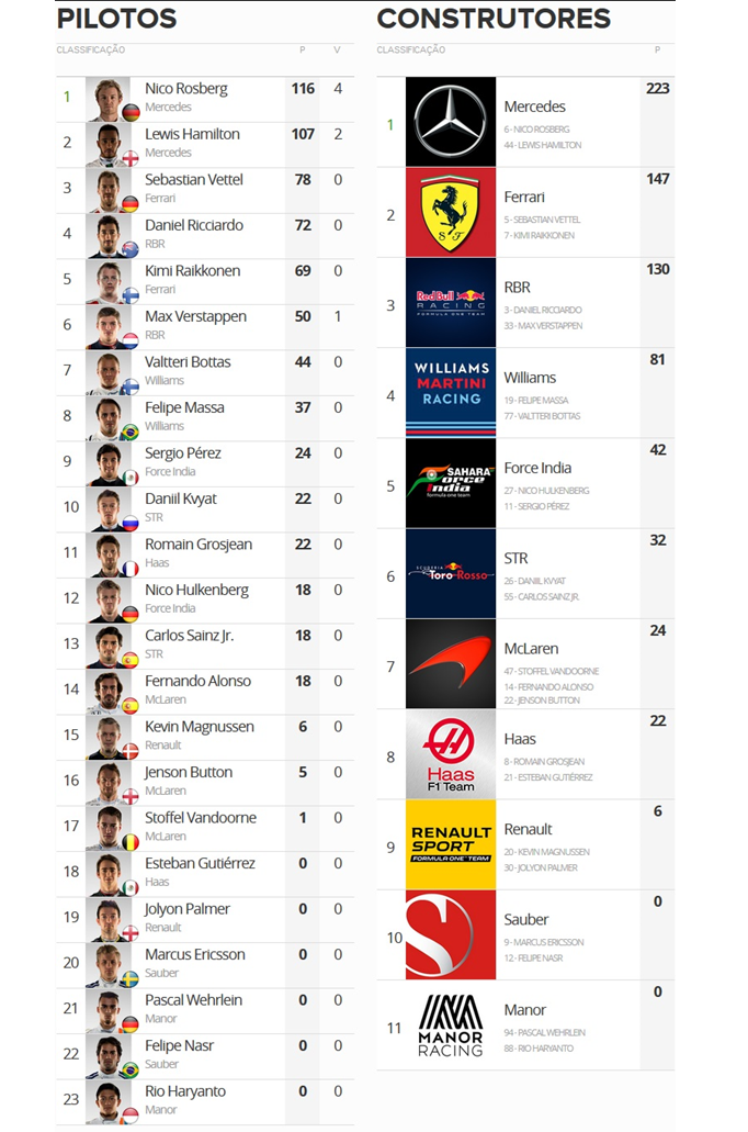 18/70: Um giro depois, alemão da Ferrari engoliu Verstappen na reta oposta e pulou para segundo. Enquanto isso, Raikkonen escalava posições e já aparecia entre os dez primeiros. Já Rosberg tentava pressionar Massa na briga pelo sexto lugar.