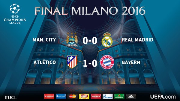 O bom é que nenhuma das partidas está decidida, os quatro times estão bem vivos e podemos ter grandes jogos no fechamento da semifinal nesta semana. Podemos ter final inédita e campeão inédito caso o City se classifique, embora, com sinceridade, eu não aposte nos ingleses depois da primeira partida. Podemos ter repeteco da final de dois anos atrás e quem sabe uma revanche do Atletico sobre o Real depois daquela traumática decisão. Outra revanche possível é a de Guardiola sobre o Real depois daquela eliminação com goleada na edição 13-14 da Champions. E é nessa final que eu aposto, Bayern e Real Madrid.