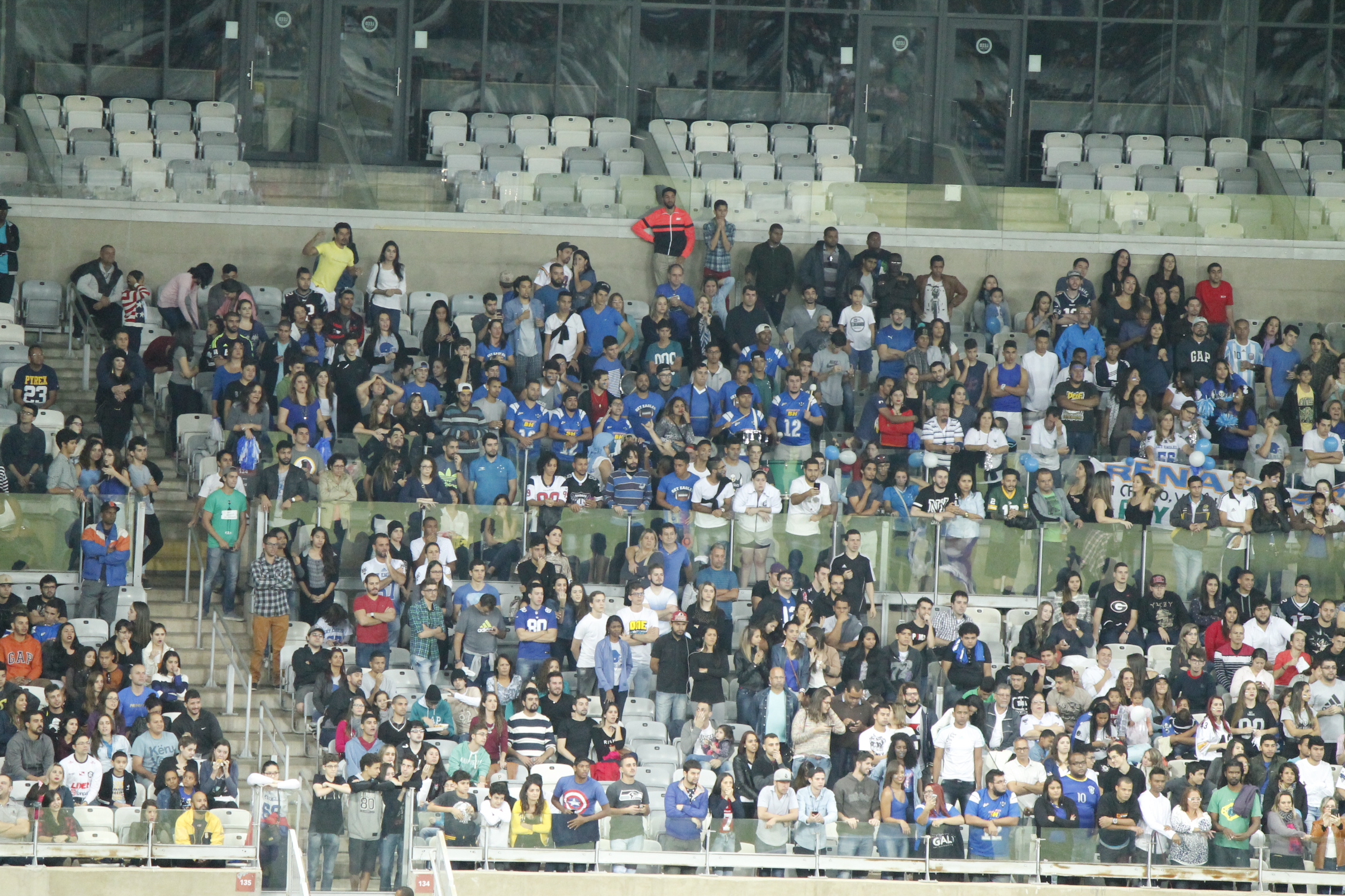 O Mineirão recebeu pela primeira vez em cinquenta anos um jogo de futebol americano. Isso é algo emblemático. Quando Minas Locomotiva e Belo Horizonte Get Eagles entraram no gramado do gigante da Pampulha o esporte alcançou seu momento máximo no estado, justamente num dia marcante para a história da modalidade no Brasil. Houve também o Gigante Bowl, que levou a decisão do Campeonato Gaúcho para o Beira Rio. Já pensou nisso: dois dos maiores e mais importantes estádios do país transformados em arenas de futebol americano? Quem diria que isso aconteceria dez anos atrás?