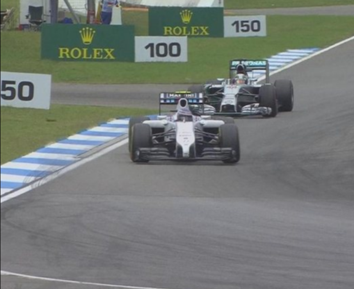 Felipe Massa mais uma vez teve azar nesta temporada. Logo na primeira curva chocou-se com Magnussen, viu o mundo “de cabeça para baixo” e abandonou a corrida ainda na primeira volta.