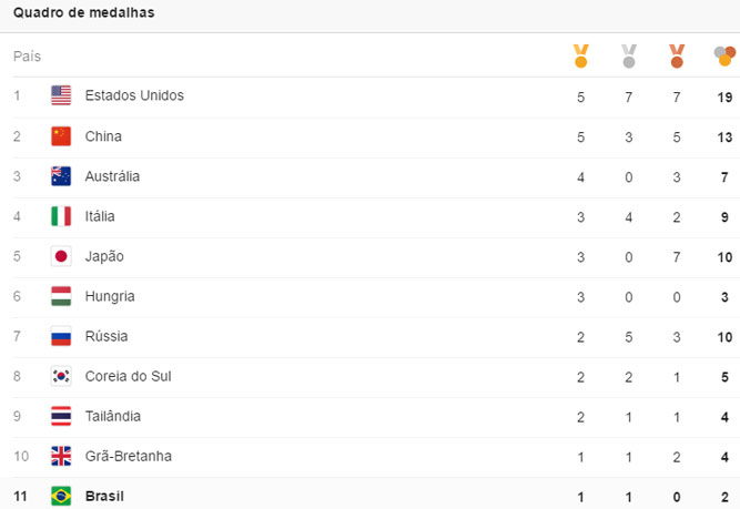 E assim terminou mais um dia de recordes e momentos históricos. Confira o quadro de medalhas.