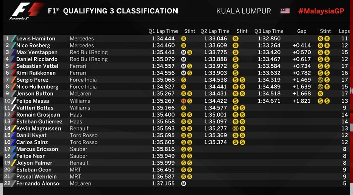 As próximas 6 corridas prometem ser emocionantes. Se levarmos em conta o retrospecto desde 2014 cada um deles venceu, pelo menos uma vez em, pelo menos, três das seis corridas restantes. Hamilton na Malásia, no Japão, nos EUA e em Abu Dhabi e Rosberg no México, no Brasil e também em Abu Dhabi. Neste “primeiro round” na Malásia, Hamilton fez a pole e Rosberg sai em segundo. O que não quer dizer muita coisa, já que na Itália a situação era a mesma e quem terminou a corrida como vencedor foi Rosberg.