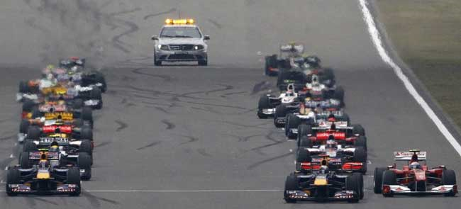 Sebastian Vettel da Red Bull largou na pole, mas viu a liderança ir por água abaixo, quando a chuva começou a cair no circuito de Xangai, ele optou por ir logo para o boxes trocar os pneus, enquanto que os outros pilotos ficaram na pista. Vettel fez algumas ultrapassagens e travou uma dura disputa com Lewis Hamilton nos boxes, e ao final terminou na razoável 6° posição.