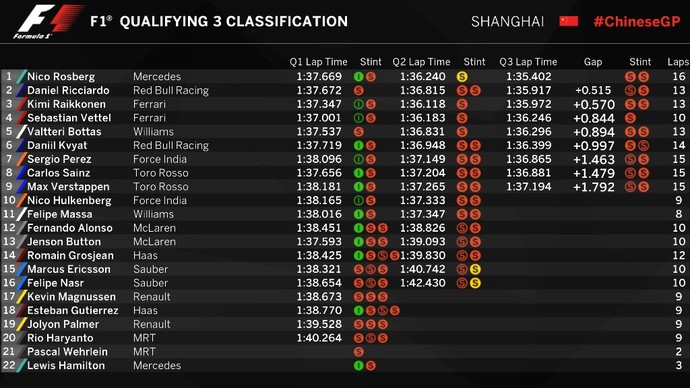 Porém o que não estava nos planos foi o desastroso resultado do inglês nos treinos. Hamilton largará em último, devido a problemas no sistema de recuperação de energia de sua Mercedes. Como Nico sabe que um dia a atual supremacia da Mercedes pode acabar e ele não quer perder a chance de ser campeão do mundo possuindo o melhor carro da atual Fórmula 1, tratou logo de fazer a pole.