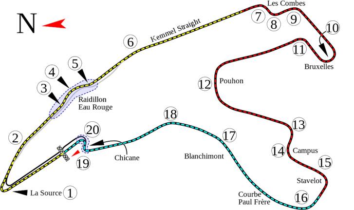 O lendário novo circuito de Spa-Francorchamps localizado nos arredores das cidades de Spa, Stavelot e Malmedy, é o maior circuito em extensão da atual Fórmula 1. Seus 7004 metros são compostos por extensas retas e curvas lendárias, como a travada La Source situada logo após a reta dos boxes e a insuperável Eau Rouge que é feita de “pé cravado” a quase 300 km/h.
