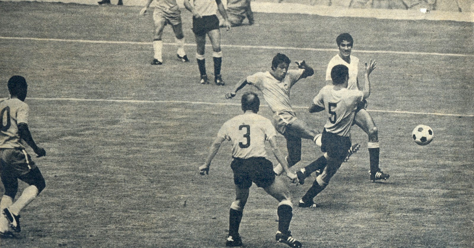 Ubiña e Mujica continuavam acertando Jairzinho – que já tinha perdido as contas de quantas pancadas já tinha levado. Félix saiu do gol para agarrar um cruzamento fácil e sofreu uma “cama-de-gato” de Morales. Na queda de cabeça, o goleiro brasileiro se machucou de novo – como de praxe naquela competição.