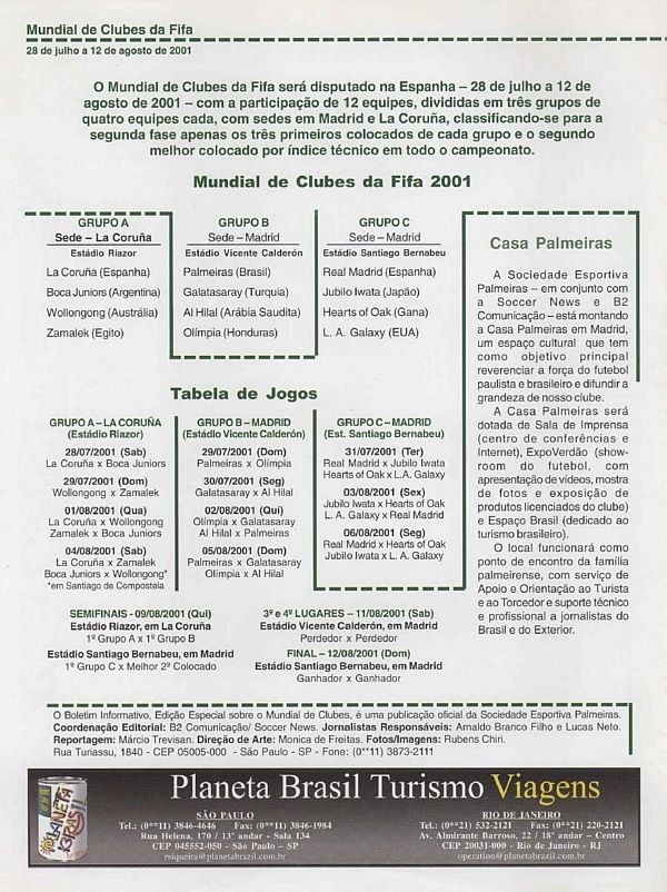O Palmeiras, que chegou a produzir material de comunicação para orientar sua torcida na Espanha e outras ações de promoção da marca, ficou no prejuízo. Depois de ameaçar entrar na Justiça contra a FIFA, o Verdão se contentou com uma indenização de U$ 750 mil, que gerou boatos de que havia vendido a participação na edição de 2000. Vale ressaltar que, de acordo com o Estado de S. Paulo, o prejuízo do clube alviverde foi de R$ 10 milhões. E de quebra, no Japão, perdeu para o Manchester.