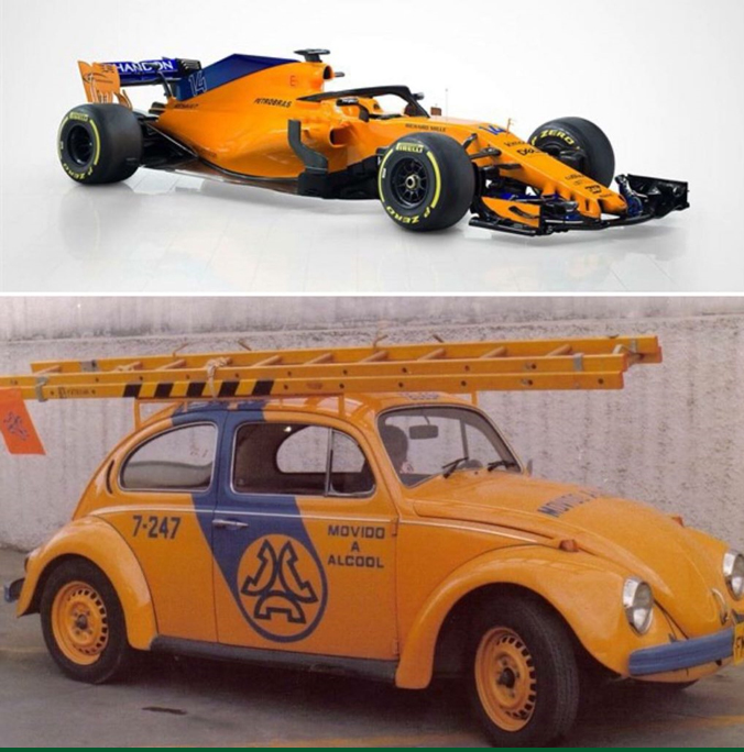 Para 2018 a McLaren manteve a base laranja, mas mudou seu esquema de cores de novo. O carro do time inglês está ainda longe de reconquistar o tempo de glórias nos anos 80 e em parte dos 90. Mas foi campeão na “zueira” durante as férias e pré-temporada.