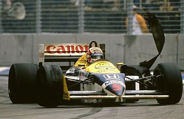 Mas num espaço de duas voltas, tudo muda. À volta 63, o pneu traseiro direito de Rosberg rebenta, fazendo com que abandone a sua última corrida da carreira. Mansell passa para a liderança, mas duas voltas depois, em plena Reta Brabham, o seu pneu traseiro esquerdo explode a alta velocidade, fazendo com que abandonasse a liderança. O seu sonho de Campeão do Mundo tinha-se esfumado.