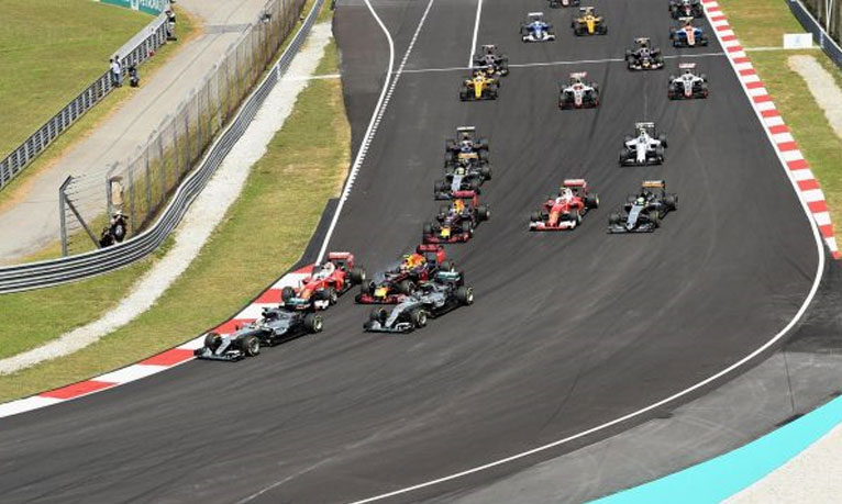 LARGADA: Pole position, Lewis Hamilton manteve a ponta. Sebastian Vettel, que partia da 5ª posição, tentou um inusitado mergulho por dentro de Verstappen na primeira curva, freou tarde demais e acabou batendo em Nico Rosberg. O alemão da Mercedes rodou, ficou na contramão e caiu para as últimas posições. Já Vettel quebrou a suspensão dianteira e abandonou. Daniel Ricciardo assumiu o segundo lugar, seguido por Sergio Pérez, Kimi Raikkonen e Max Verstappen.