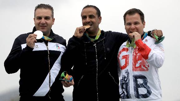 Teve recorde em finais olímpicas na prova de pistola 50m masculina. Jongoh Jin, da Coréia do Sul, marcou 193,7 pontos e venceu o vietnamita Xuan Vinh Hoang, que havia sido ouro na prova de 10m. o bronze ficou com Song Guk Kin, da Coréia do Norte. Na fossa double, um momento histórico. Fehaid Aldeehani se tornou o primeiro atleta medalhista de ouro da história disputando de forma independente com a bandeira dos Jogos Olímpicos. O atleta representou o Kwait, seu país, dos Jogos Olímpicos de Barcelona 1992 até Atenas 2004, além de Londres 2012, e era dono de um bronze na modalidade. Com seu país excluído por intervenção do governo no Comitê Olímpico Nacional. Marco Innocenti, da Itália, ficou com a prata e o britânico Scott Steven com o bronze.