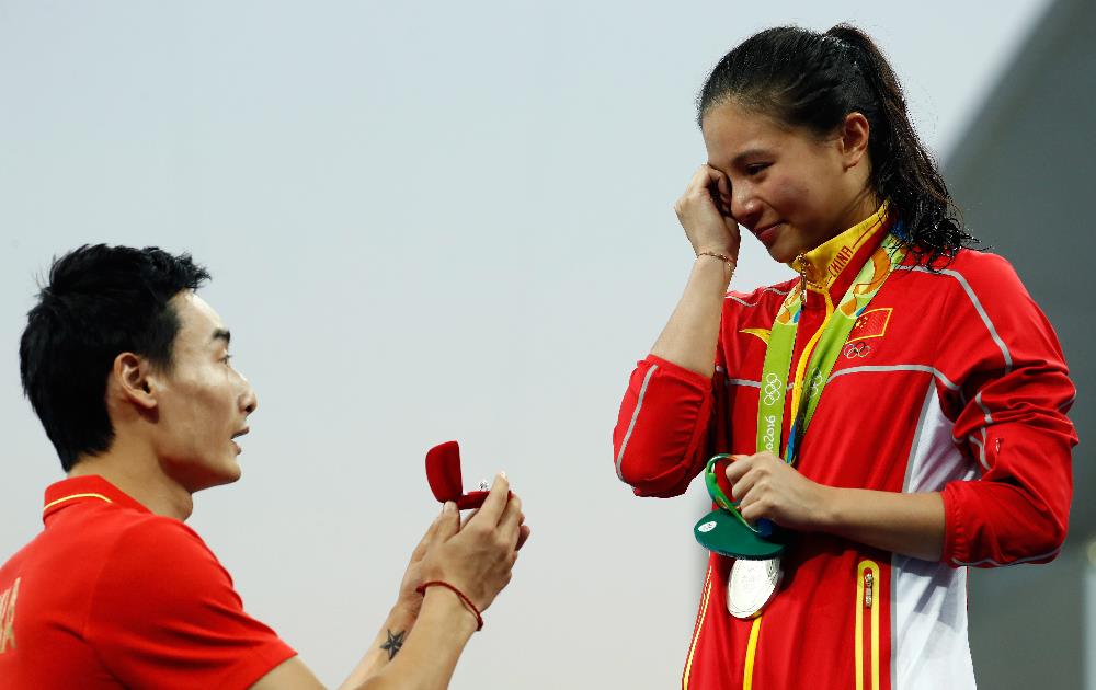 A tarde de domingo foi duplamente especial para a. Minutos após conquistar a medalha de prata na prova do trampolim 3m dos saltos ornamentais, a chinesa Zi He, de 25 anos, foi pedida em casamento pelo namorado, o também saltador Kai Qin. A cena ganhou aplausos do público que acompanhava as disputas do esporte no Centro Aquático Maria Lenk. ZI ficou atrás da compatriota Tingmao Shi. O bronze foi para a italiana Tania Cagnotto.
