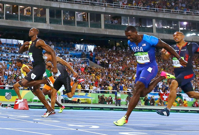 E a grande atração do dia foi Usain Bolt. O raio fez para o gasto nas seletivas e chegou na final pronto para duelar com o americano Justin Gatlin. E não teve novidade. Usain Bolt é, mais uma vez, o homem mais rápido do mundo! O “raio” conquistou o tricampeonato Olímpico dos 100m rasos com o tempo de 9s81, para delírio da torcida que lotou o Engenhão. O feito inédito foi comemorado com mais uma de suas tradicionais voltas olímpicas festejando com a galera.A prata ficou com o norte-americano e grande rival de Bolt, Justin Gatlin, que sem nenhuma carisma, não parecia muito a vontade em comemorar. O canadense Andre de Grasse ficou com o bronze, que era o que era possível almejar.