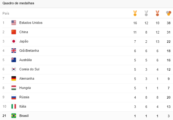 E no fim das contas, ta aí o quado de medalhas do dia 6.