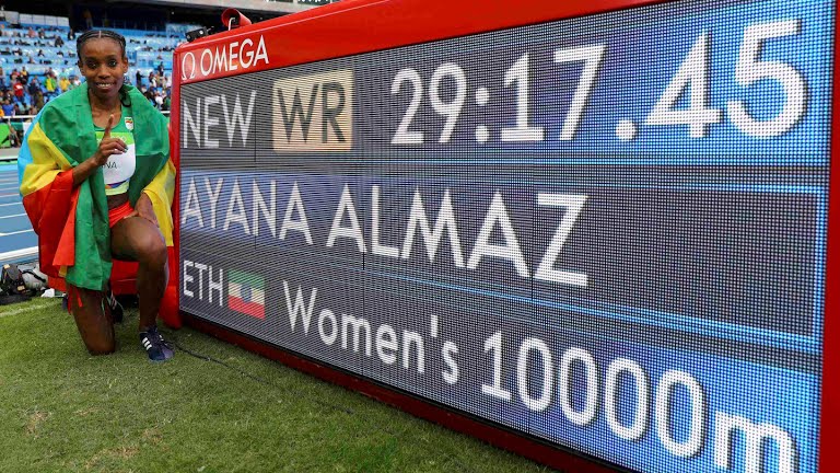 Se a natação vai saindo de cena, o esporte mais nobre dos jogos olímpicos chegou. No primeiro dia de atletismo, logo na primeira final já veio recorde. A etiope Almaz Ayana pulverizou os recordes olímpico e mundial da prova dos 10 mil metros, com 29min17s45. A queniana Vivian Jepkemoi Cheruiyot foi prata e Tirunesh Dibaba, também da Etiópia, ficou com bronze.