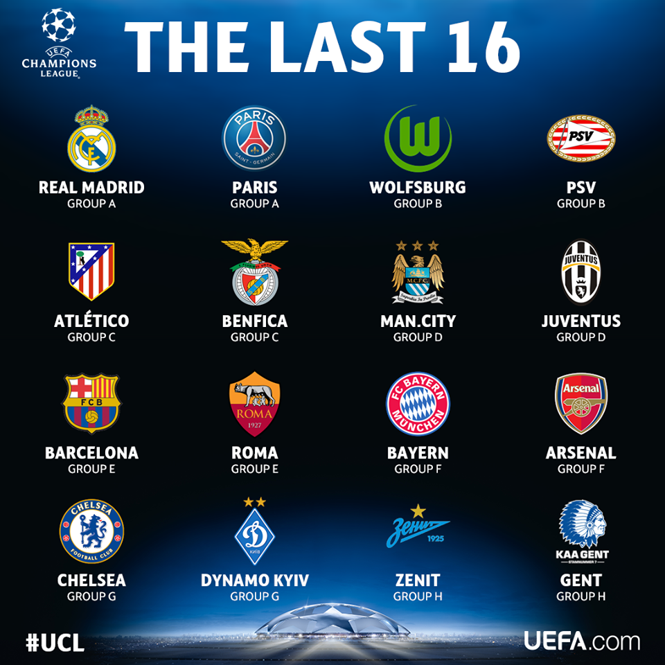 Nas oitavas já se sabe que os times primeiros colocados não se enfrentam e ainda estão proibidos os confrontos entre times do mesmo país ou que estavam no mesmo grupo. Dos primeiros colocados os adversários prediletos são Wolfsurg e Zenit, o que não quer dizer que jogar contra eles será fácil. Atlético e City são outros que podem avançar mais na competição.